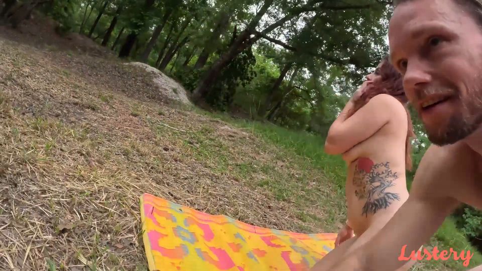 So, we went out to our favorite spot in the forest with a picnic blanket and naughty intentions. Lynn wore her favorite yellow sundress and got very horny on the hike in. The rain was sparse, but it just helped break up the excitement and joke about being wet. We set up and just did what comes naturally, complete with a healthy cumshot to the face!