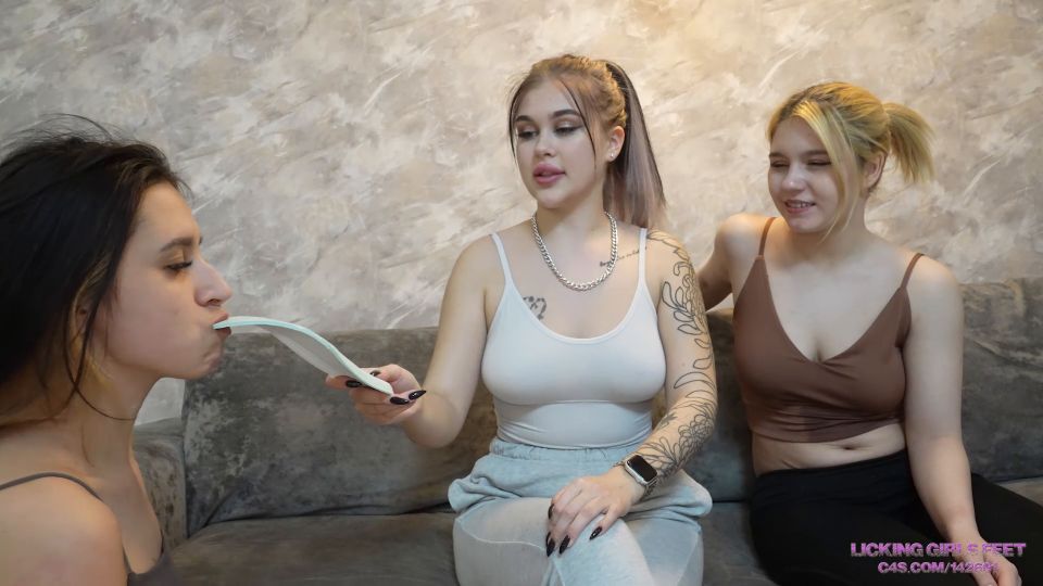 What could be tastier for a slave than the sweat of her Mistress? Grace and Nicole returned from a hard workout and sweaty. Their bodies were damp with sweat and, of course, they did not go to the shower. What for? After all, they have this slave olivia who will lick them completely. The slave began to lick the smelly armpits of the girls and the exposed parts of their bodies. She sniffed Nicole and Grace's sweaty asses while they laughed at her. The most delicious thing was waiting for her after.. It was the girls' stinky sneakers.. they took off their sneakers and ordered pathetic olivia to smell them. They wiped their sweaty insoles on her tongue and wiped their wet socks on her face.