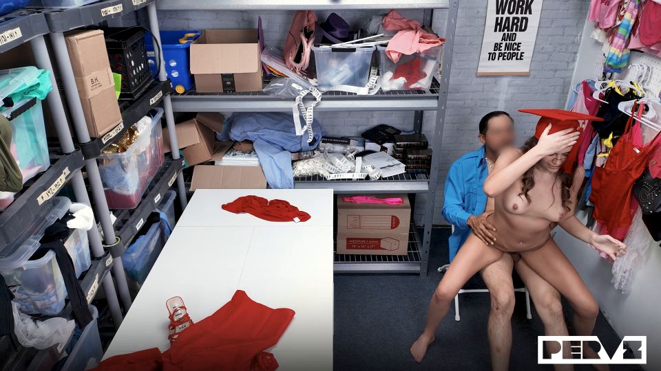 The commencement ceremony was about to begin, and Selina was running late. She rushed to the event running like mad until she felt the sharp crack of her heel. In panic, she went into the first store she could find and spotted a pair of new heels that would make her ceremony an unforgettable one. Yet, her shoes werent the only broken thing. Cashless, she tried her luck and attempted to walk away with the new heels as if they were her old pair. Fortune was not on her side as she tried to make a swift exit, and Juan Largo, the ever-vigilant security guard, intercepted her impulsive flight. Now in a dimly-lit back office, Selina was questioned by the security guard about the shoes she was wearing. Desperate, she quickly came clean with the officer and told him she was planning to come back and pay later, but she had to make it to her graduation first. The security guard was not particularly sympathetic to her confession and decided to strip-search her instead to ensure she hadnt shoplifted anything else. Eventually, he felt sorry for Selina and offered her a choice she would make it to her graduation day if she was willing to show the officer those extracurricular skills she did not learn from her teachers