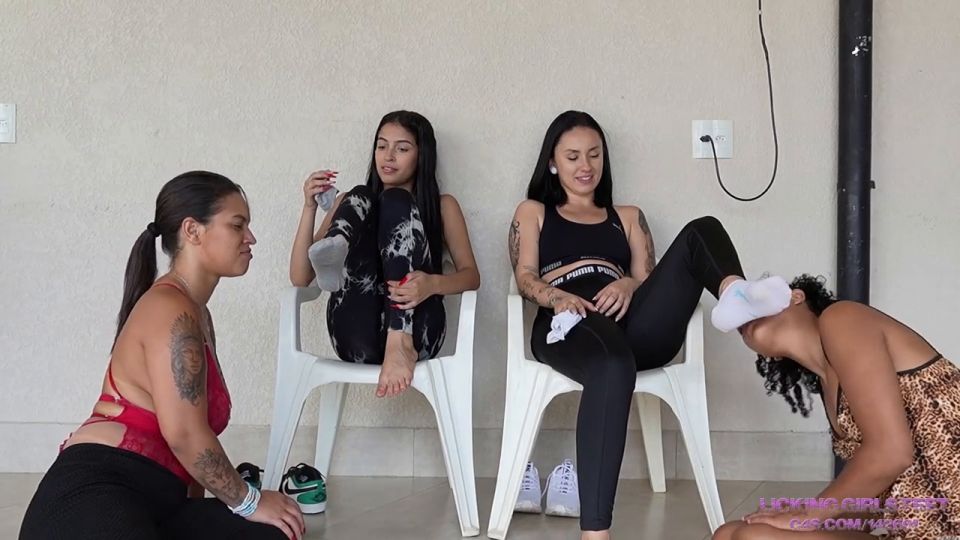 Kim and Nika ordered their whores lucy and naty to sniff their stinky socks. After which the girls made pets out of these whores.. they threw their socks to them and the slaves faithfully brought them back in their teeth. Kim and Nika treated them like pets and spat on the floor.. the slaves licked their Mistresses' spit from the floor and carried out all the humiliating orders. After which lucy and naty licked Kim and Nika's sweaty bare feet.