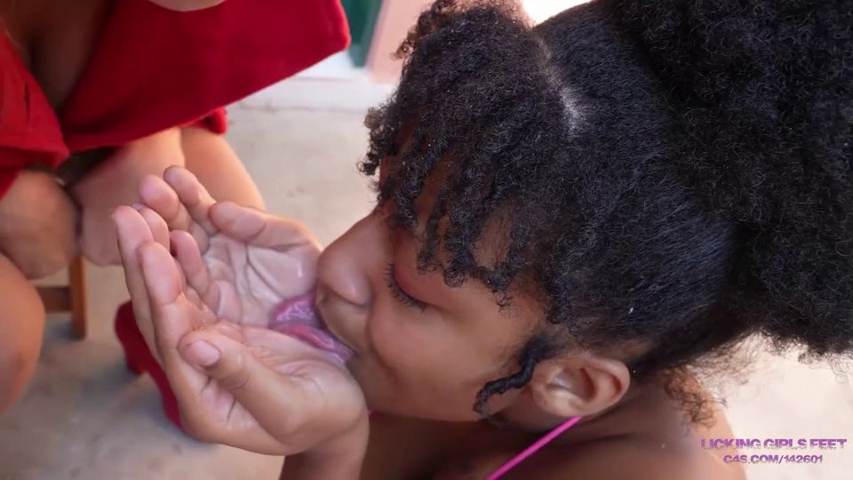 Anita and Maisa decided to have some fun with their black slave vicky today. They heard from their friends that this slut is an excellent foot worshiper. When vicky crawled up to her Mistresses, she thought that the girls would order her to lick their feet, but they came up with another humiliation for her. "I don't think you're worthy of licking my feet yet.. First I want to wash your stupid face!" - Anita laughed. Maisa supported her friend and the girls began to spit in the pathetic slave's face. "It seems our drool is dripping onto the floor.. You'll wash the floor at the same time!" - Maisa said and bent vicky to the floor. vicky had to lick her Mistresses' spits off the dirty floor. The girls were having fun and decided to humiliate their black slut even more and began to blow their noses into napkins. vicky chewed on napkins with Anita and Maisa's snots on them while they continued to spit in her face.